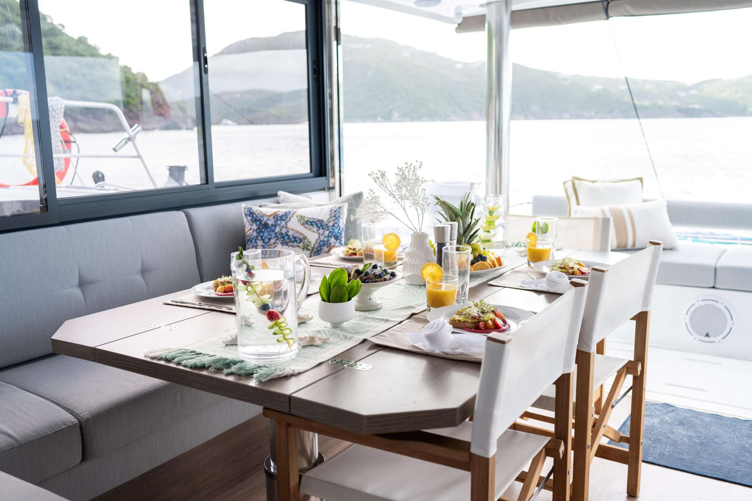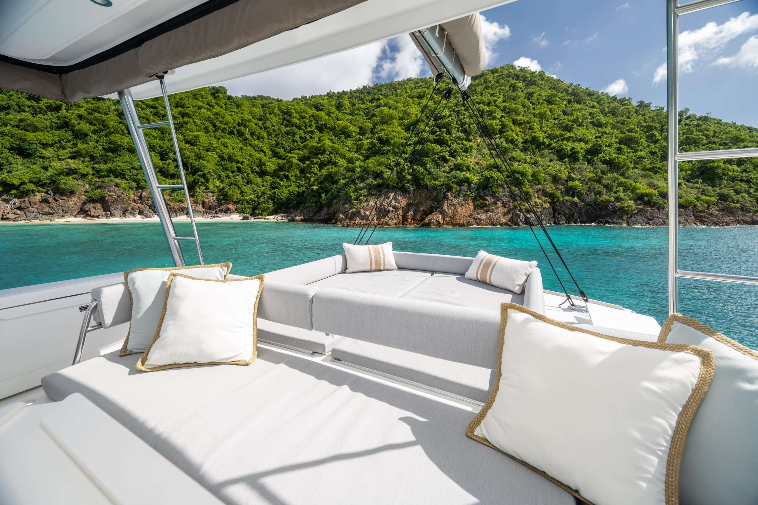 Life onboard reflects Bali’s signature wide-open design philosophy. The yacht’s seamless indoor-outdoor flow creates a relaxed, social atmosphere ideal for Caribbean cruising. Expansive living spaces invite guests to gather, unwind, and enjoy uninterrupted views of the BVI’s turquoise waters, while modern finishes and thoughtful details elevate the onboard experience throughout.