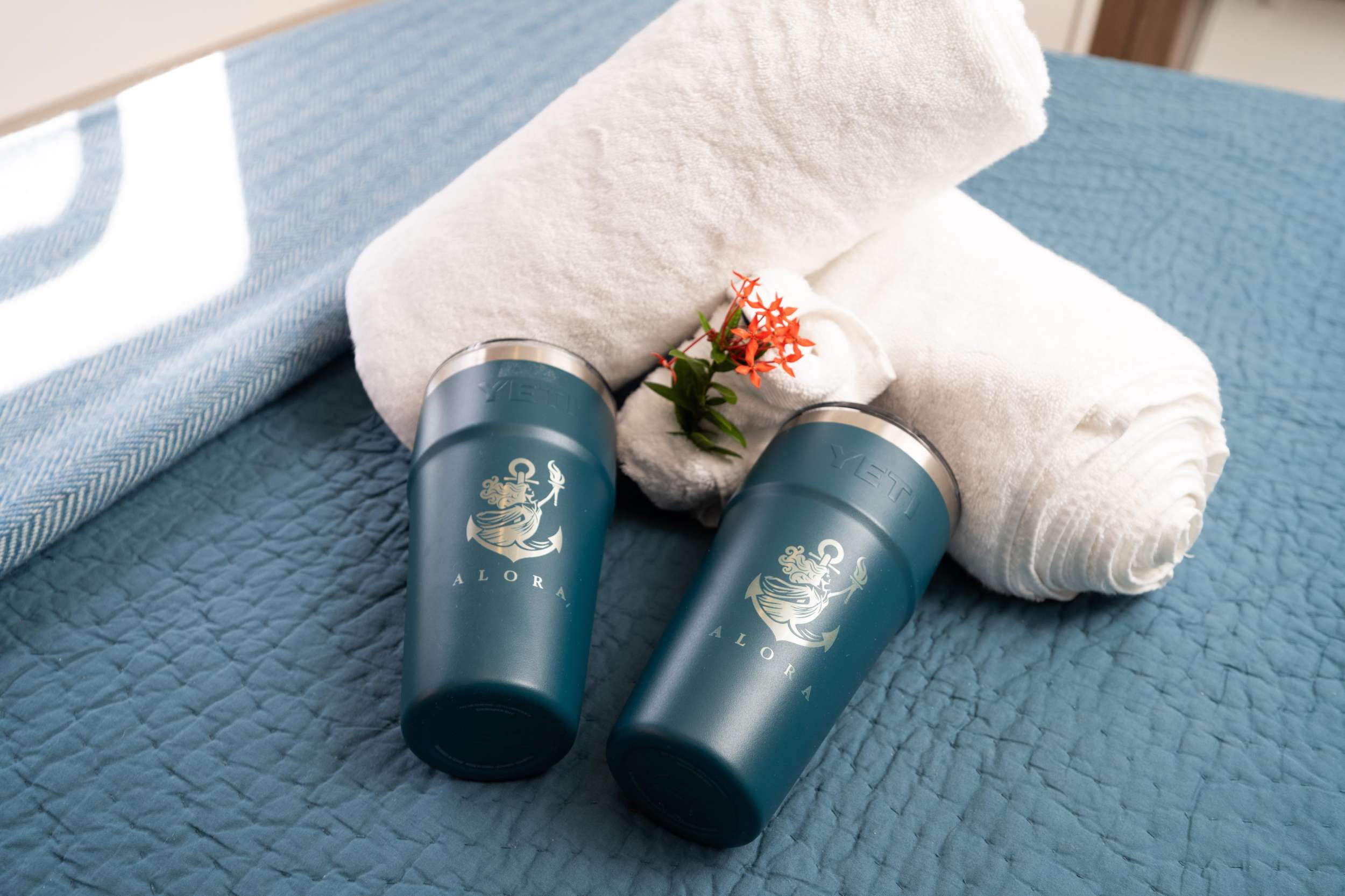 ALORA is fully equipped for effortless island living. Air conditioning, solar panels, a water maker, ice maker, and full-size refrigerator ensure comfort and convenience at all times, while Starlink connectivity keeps guests connected when desired. The modern galley is complemented by a fully customizable menu, allowing the onboard chef to tailor each meal to guests’ tastes using premium ingredients and refined presentation.