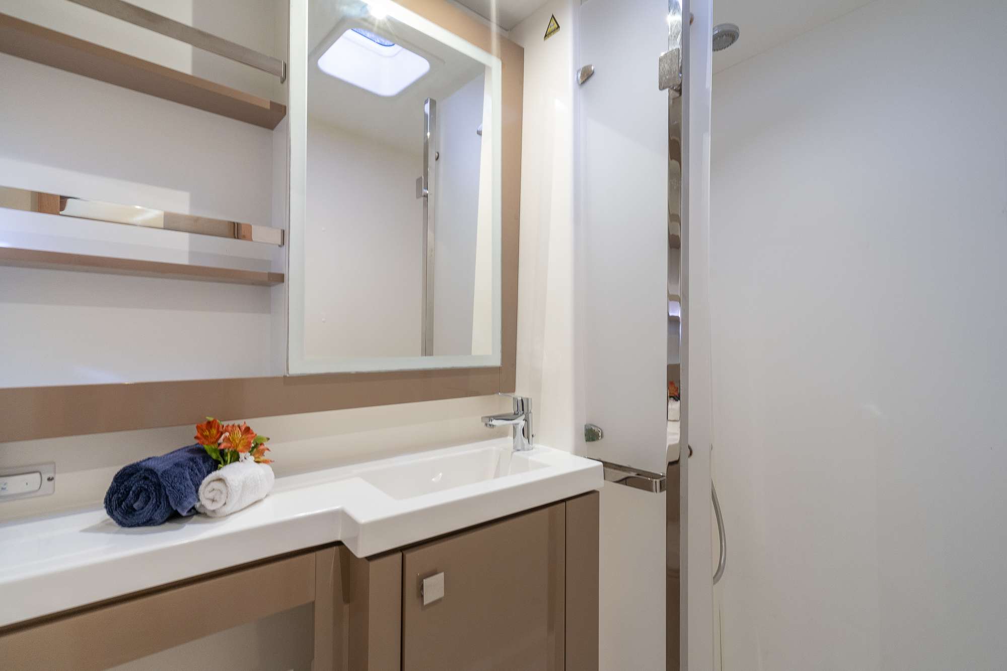 LUNA BLISS, a Fountaine Pajot Saona 47, accommodates 8 guests in 4 queen cabins. With expansive outdoor living, a bright modern interior, premium amenities, and an outstanding selection of water toys, she offers a naturally luxurious Caribbean charter experience.