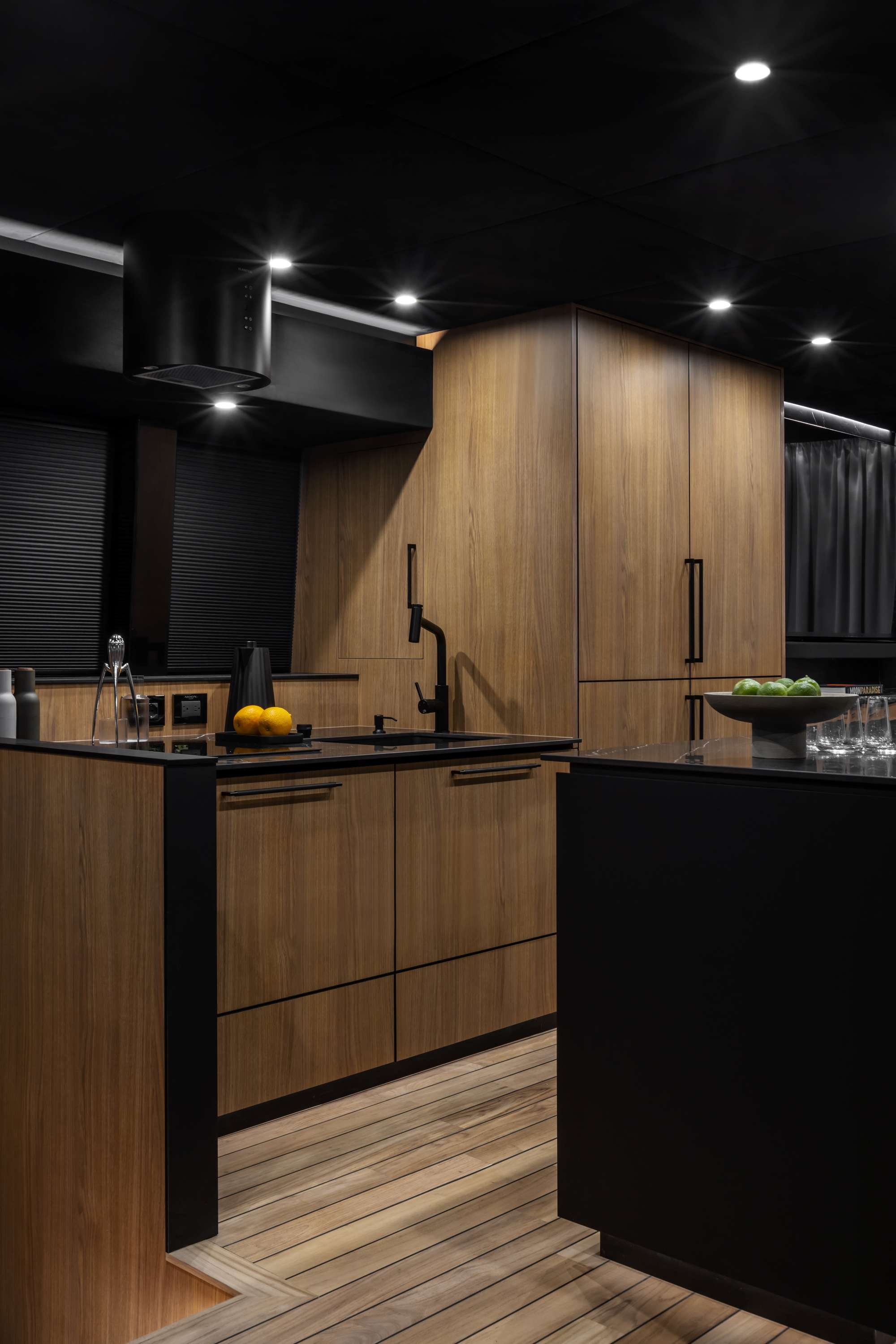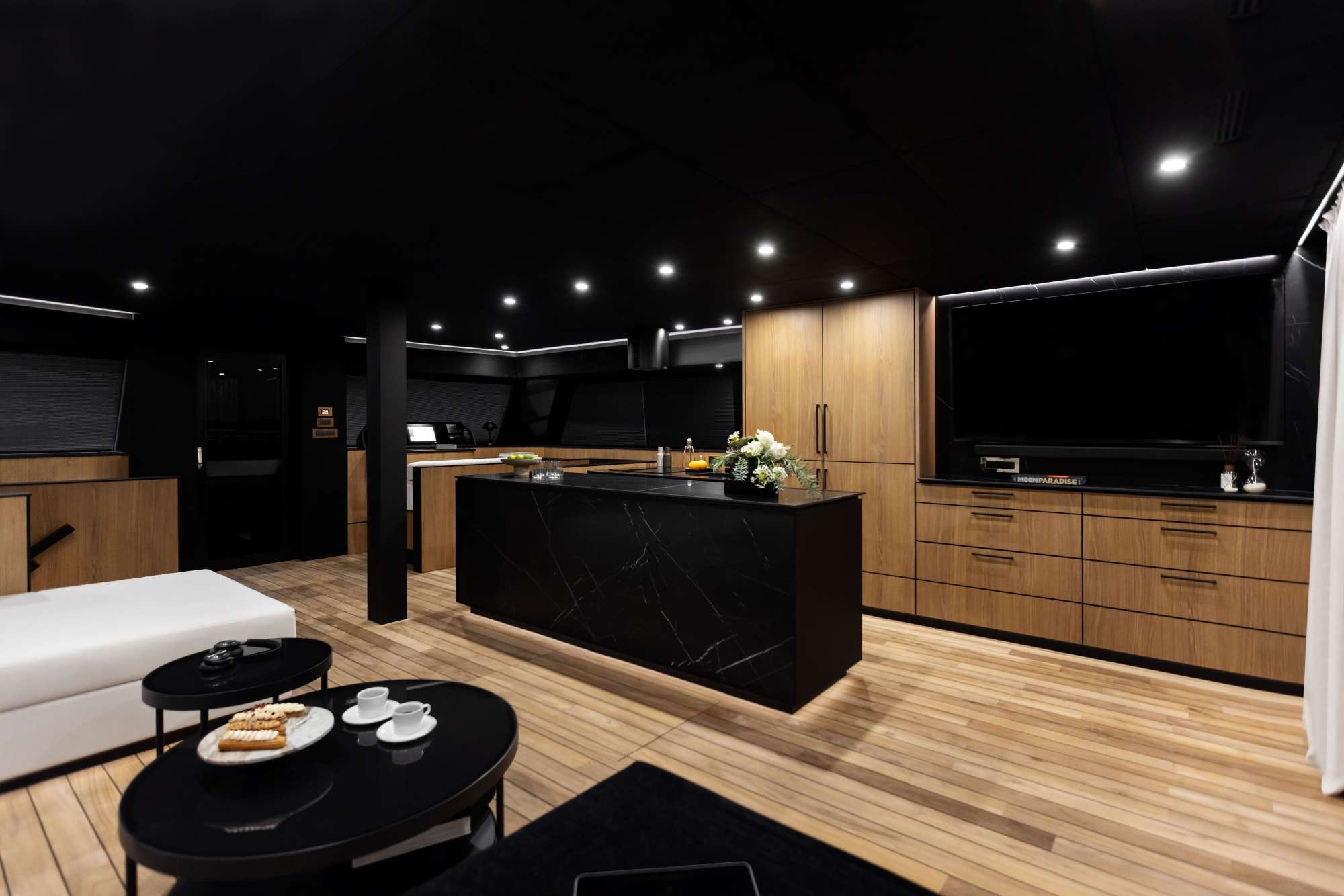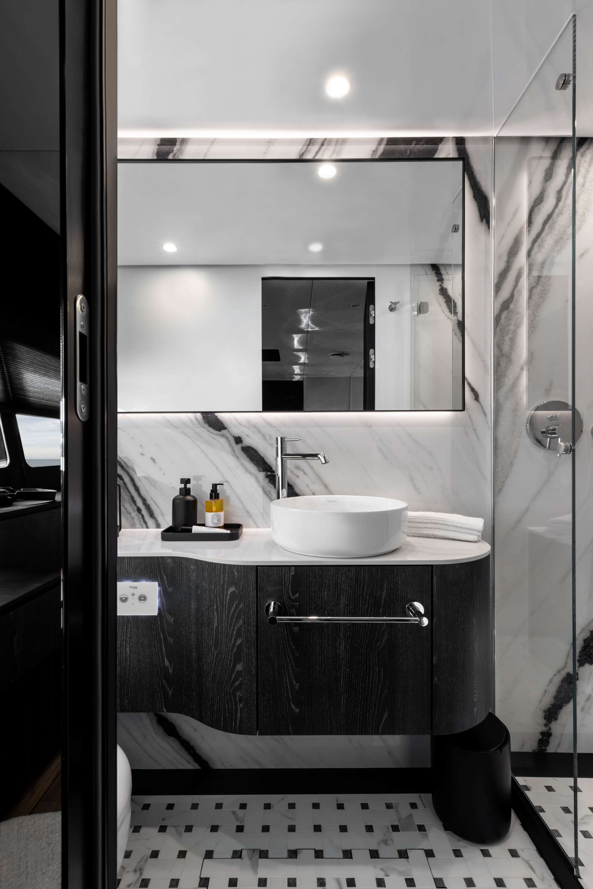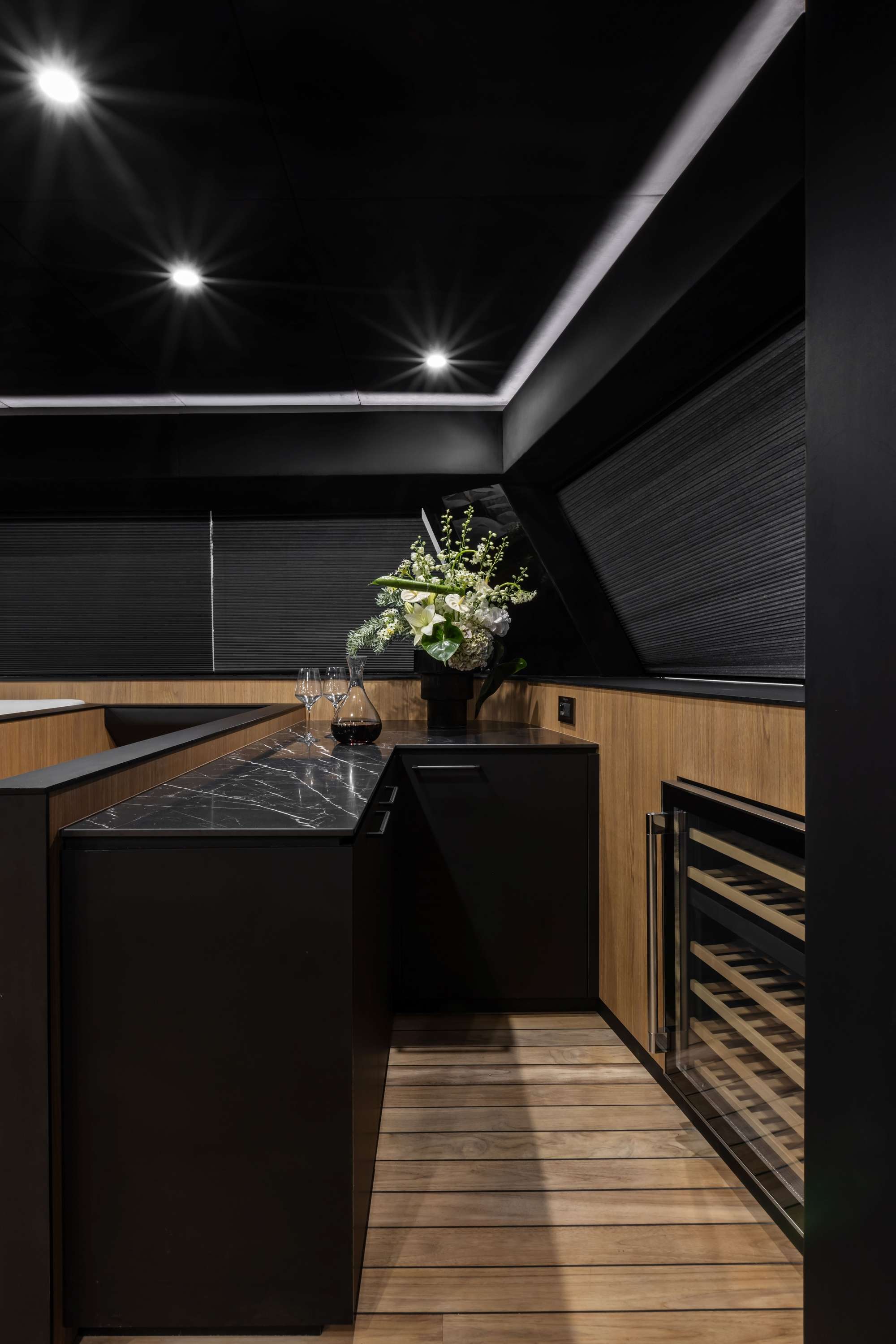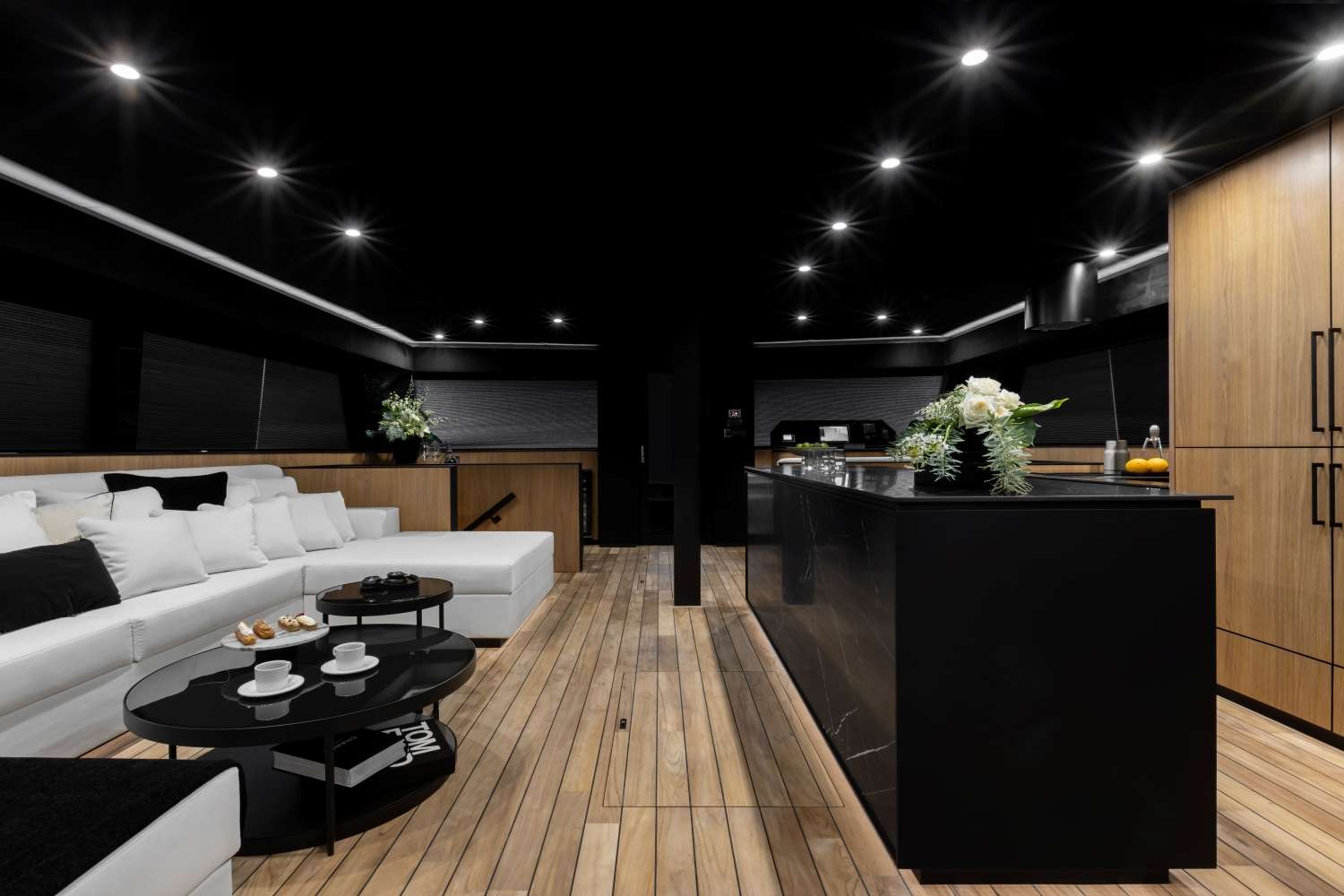 Her interior spaces are beautifully appointed and flooded with natural light, showcasing a sophisticated palette of premium materials including natural stone, sintered surfaces, and elegant upholstery. Every element has been thoughtfully curated to create a calm, luxurious atmosphere—perfect for relaxing between island hops in the BVI. Spacious, open-plan living areas flow effortlessly, making MOON SHADOW an ideal platform for both socialising and quiet retreat.
