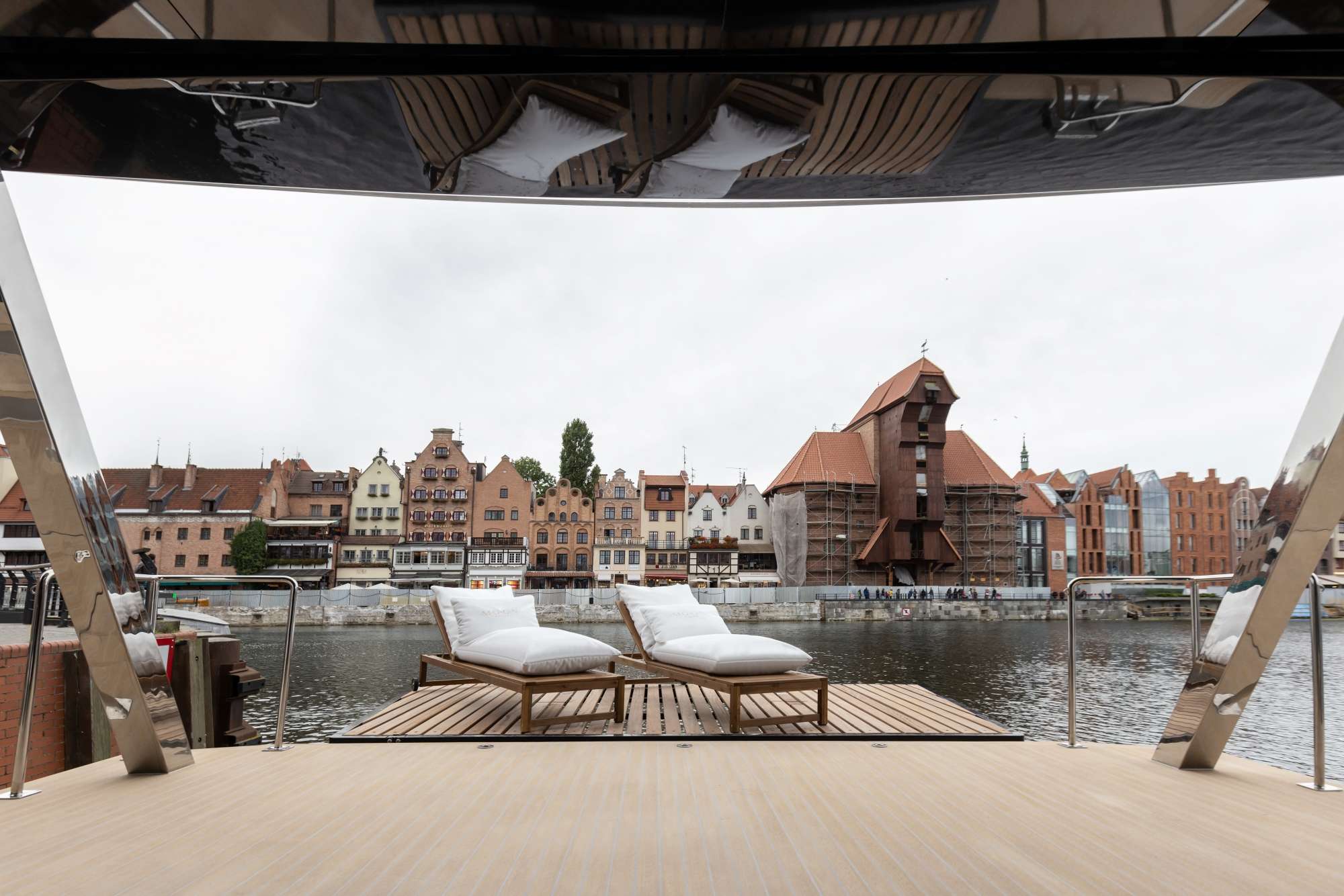 On deck, MOON SHADOW truly excels. The aft cockpit, sheltered from the breeze, is designed for refined al fresco living, featuring a generous lounge area and comfortable seating—ideal for long lunches or sunset cocktails at anchor in iconic locations such as Norman Island, Jost Van Dyke, and Virgin Gorda. Wide swim platforms and a hydraulically extendable gangway transform the stern into a private beach club, providing effortless access to the turquoise waters of the Caribbean.